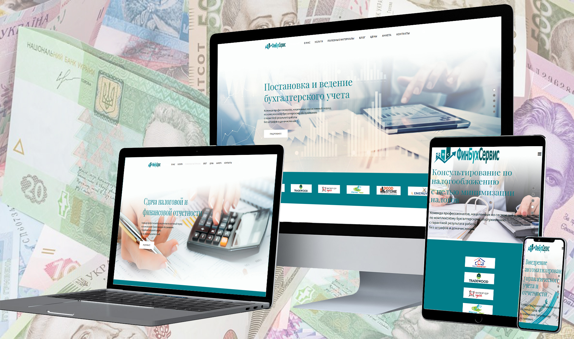 Создание сайта компании занимающейся предоставлением услуг по финансово - бухгалтерсому аутсорсингу. Разработка логотипа, слайдеров и копирайтинг текстов сайта.